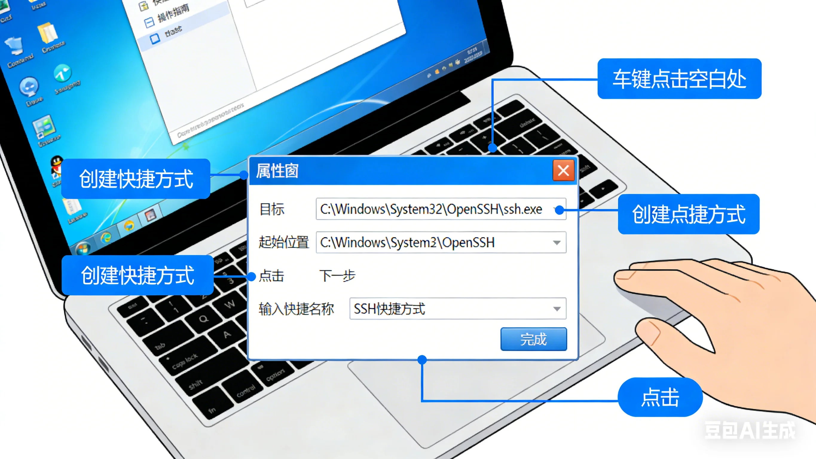 电脑本地创建ssh快捷方式